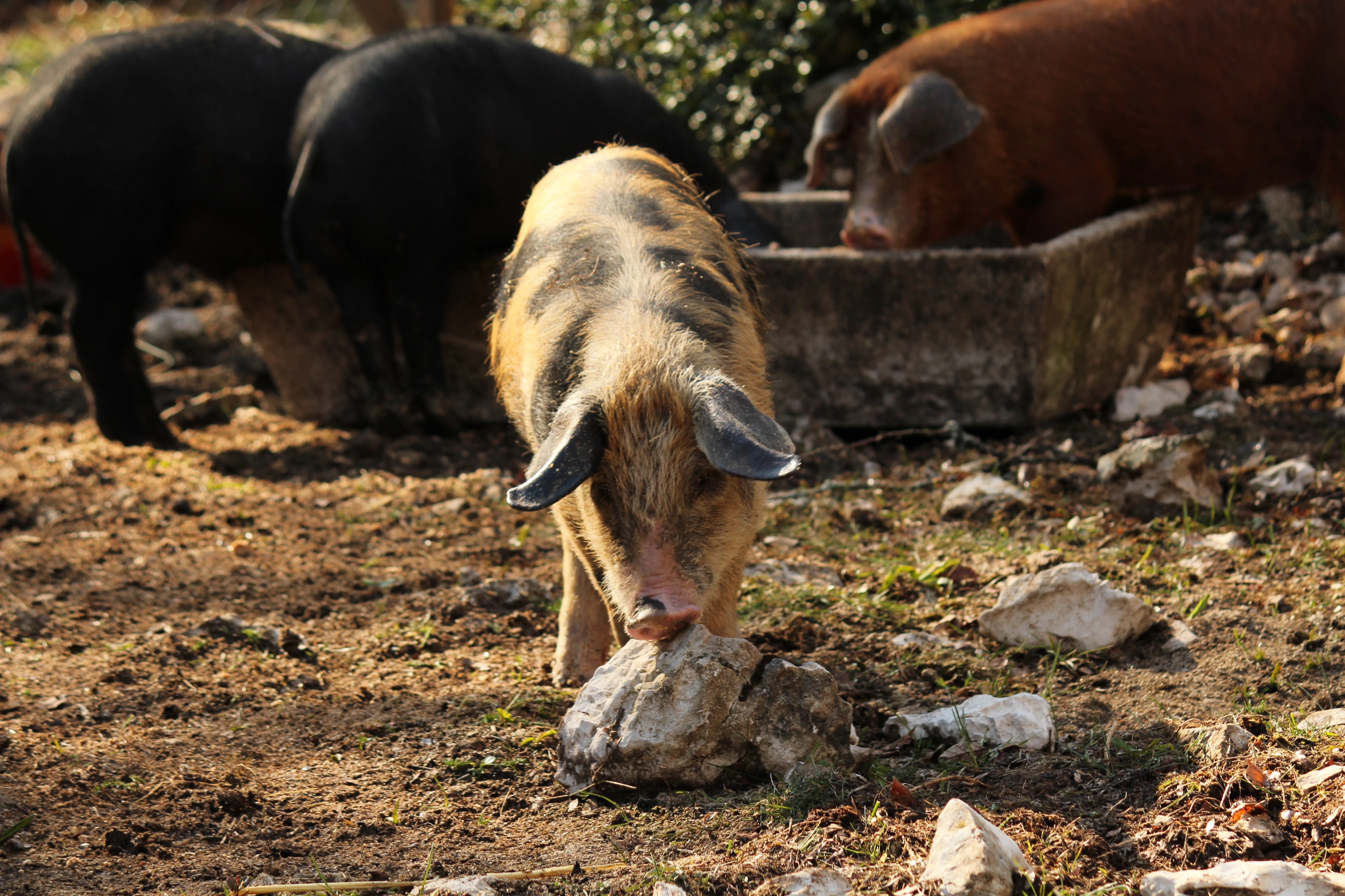 – Moutons, cochons (à partir de mai), lapins (plusieurs races), ânes, 25 chiens de traîneaux (et oui Sébastien est aussi musher)…