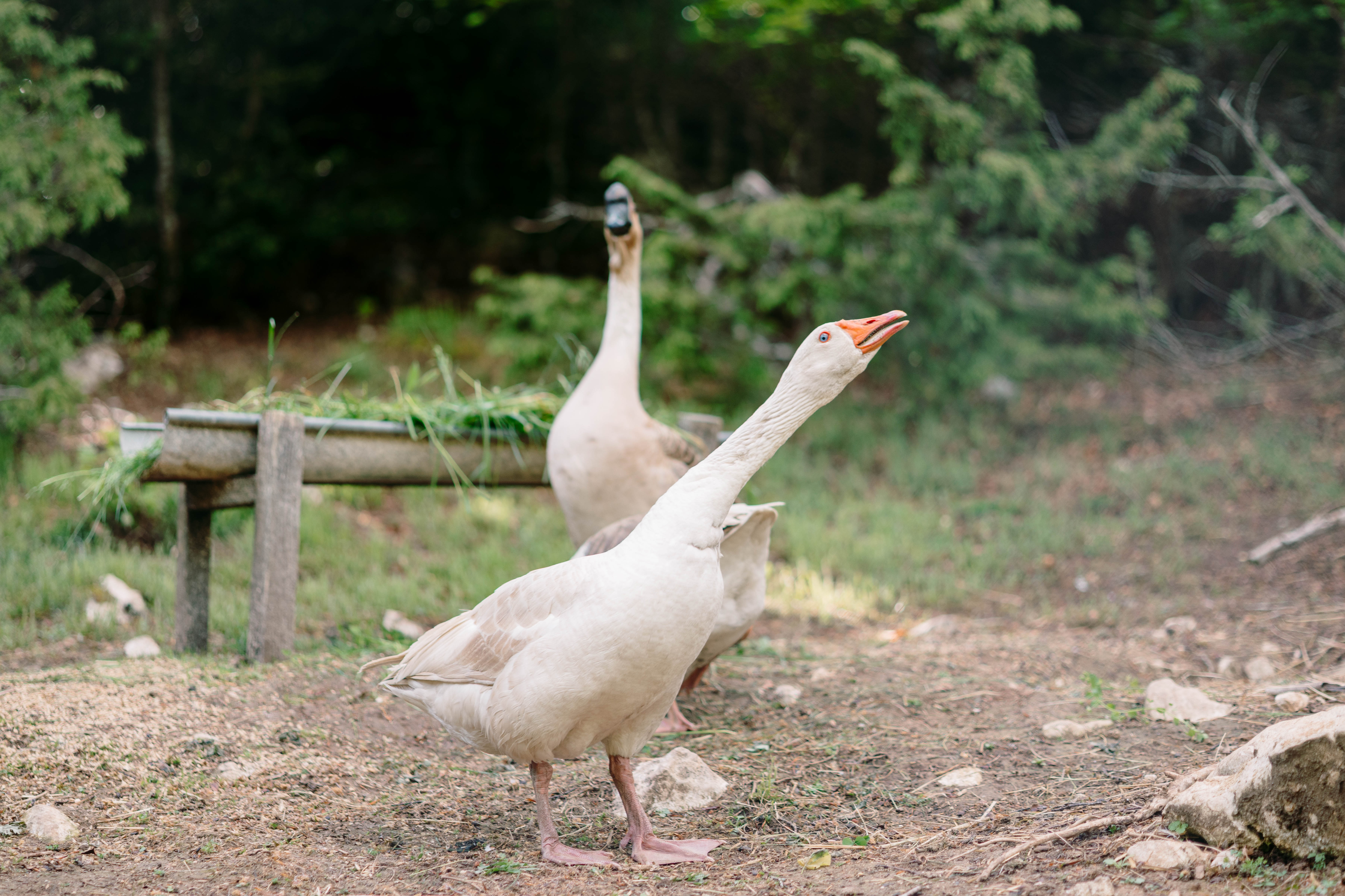– Une basse cours très diversifiée (Poules, Canards, Oies, Pintades, Dindes) dans de grands parcs naturels